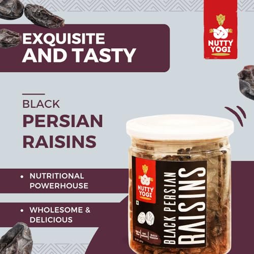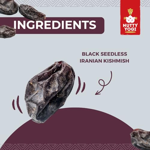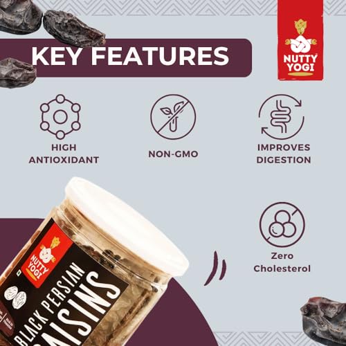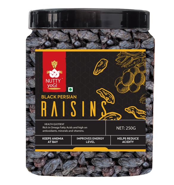 Nutty Yogi Black Persian Raisins | Seedless Kishmish | Naturally Contains Anti Oxidants - 250gm (Pack of 1)