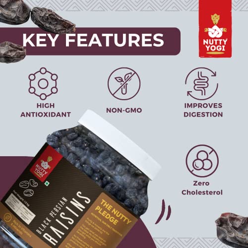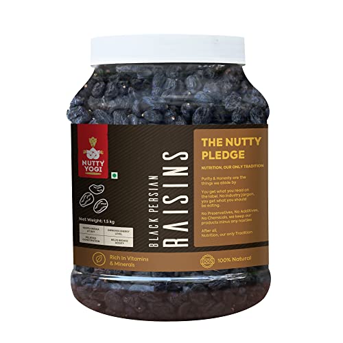 Nutty Yogi Black Raisin 1.5kgs jar| Kali Kishmish | Munakka Dried Fruits | Delicious & Healthy Snack | High in Antioxidants Naturally Sweet & tasty