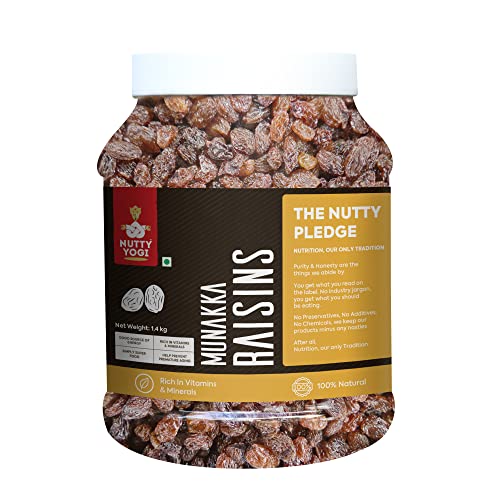 Nutty Yogi Munakka Raisin 1.4kgs Jar| Afghani | Abjos | King Size | (Garnish or Add to Fruit Salads Oatmeals Mueslis Trail Mixes Ice creams Baked Goods Kheer & Ladoos)