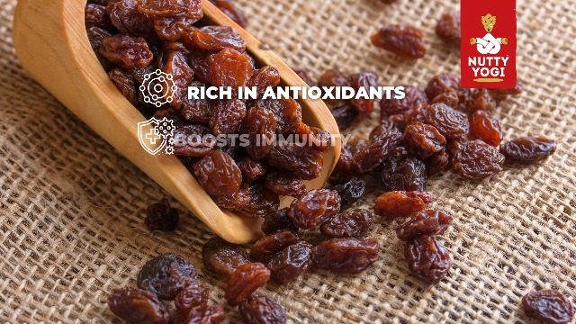 Raisins are rich in Vitamin A and Vitamin C and a good source of Iron and Anti-oxidants.