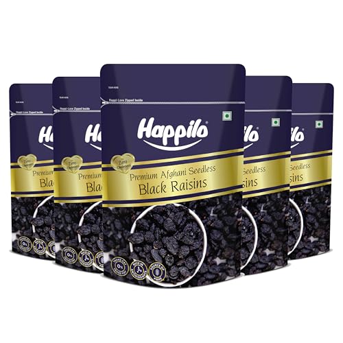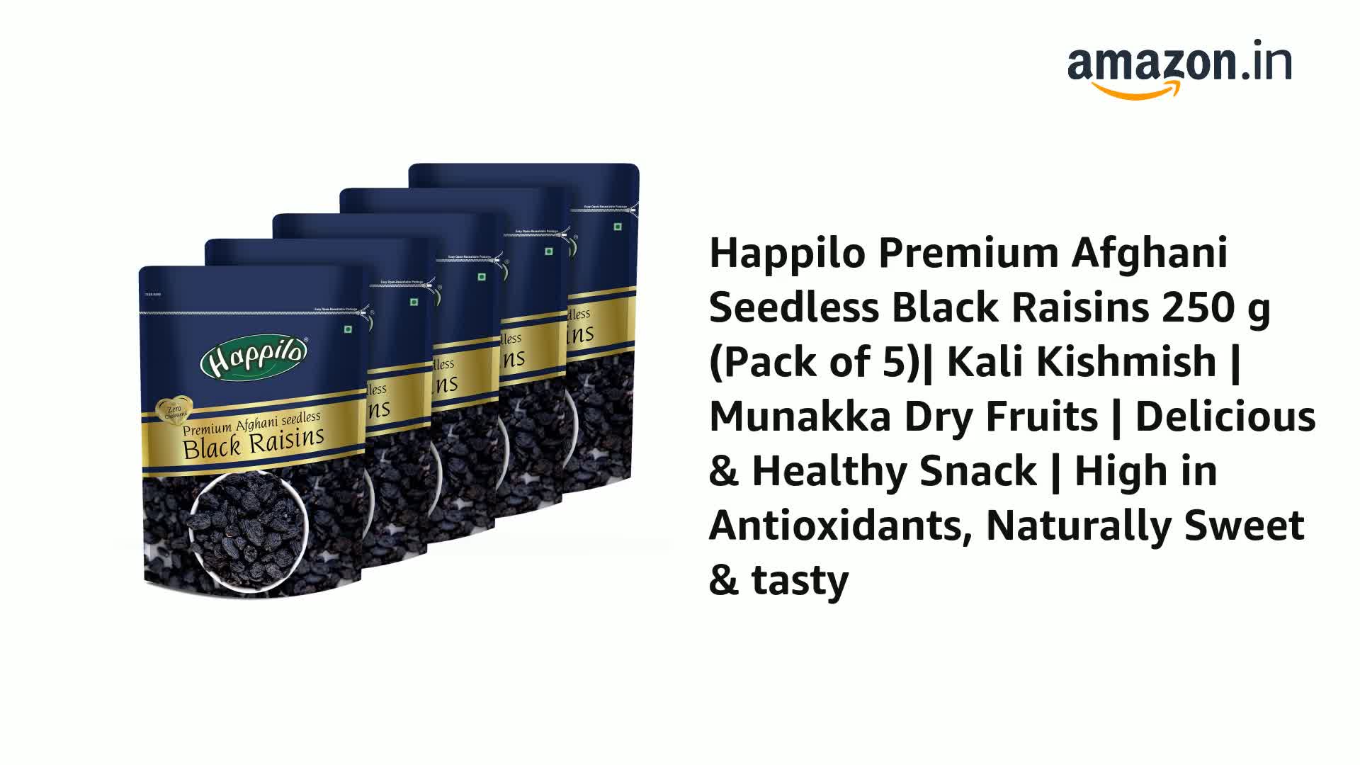 Size:Pack of 5 | Pattern name:Black Raisinshas travelled the world to get the finest gourmet dry fruits dried fruits nuts berries and dates 100 percent natural and authentic. Indulge into the gourmet and grocery world of with awesome natural nuts and dry fruits along with the unique dry fruit mixes fusions and flavoured dry fruits healthy seeds and dried berries specially crafted for your taste and health. dry fruit gift boxes and festive dry fruits and nuts gift pack brings health happiness and love to gift to your colleagues friends and family. We bring you the taste and health together in single pack in the finest of packing packed in an art of the state facility certified by all majors like fssai iso etc. Every pack is a perfect dry fruits gift for every festive occasion. product range includes dates like kalmi dates medjoul dates Omani dates kimia dates and exotic nuts and berries like dried goji berries hazel nuts macadamia nuts pecan nut kernels pine nut kernels exotic brazil nuts (amazon nuts) roasted Californian almonds flavours like magic masala peri peri salted roasted jumbo flavours like green chilly cashews lightly salted cashews paneer tikka cashews seeds like flax seeds sunflower seeds quinoa seeds chia seeds pumpkin seeds roasted lightly salted premium international products like dried whole blueberry cranberry super mix super mix berries heart healthy mix healthy nutmix party mix - lightly salted nuts and berries omega seed mix (roasted sunflower pumpkin and flax seeds) seeds and berries trial mix cranberries lovers mix jumbo mamro almonds 100 percent natural Californian almonds Afghani anjeer Turkish apricots blueberries dried and sweet whole cranberries roasted salted pistachios Californian pitted dried prunes raisins like Indian kishmish/dry grapes Afghani green raisins and Afghani black raisins walnuts dry fruits without shell and California in shell walnut kernels fancy dry fruit gift box dry fruits gift box with fruits dry fruits combo pack offers assorted dry fruits mixed dry fruits dry fruits box dry fruits container dry fruits mix dry fruits pantry dry fruits gift pack dry fruits mixed offer combo pack mixed nuts and dry fruits and all ranges of dry fruits and nuts and berries. Raisins are the original candy- nature's candy. They are one of the most nutritious dried fruits in the world. Famous for their sweetness so they're a yummy healthy snack. These are out of this world. They have double the deliciousness of ordinary raisins. Great for snacking adding to cereal cooking and baking.