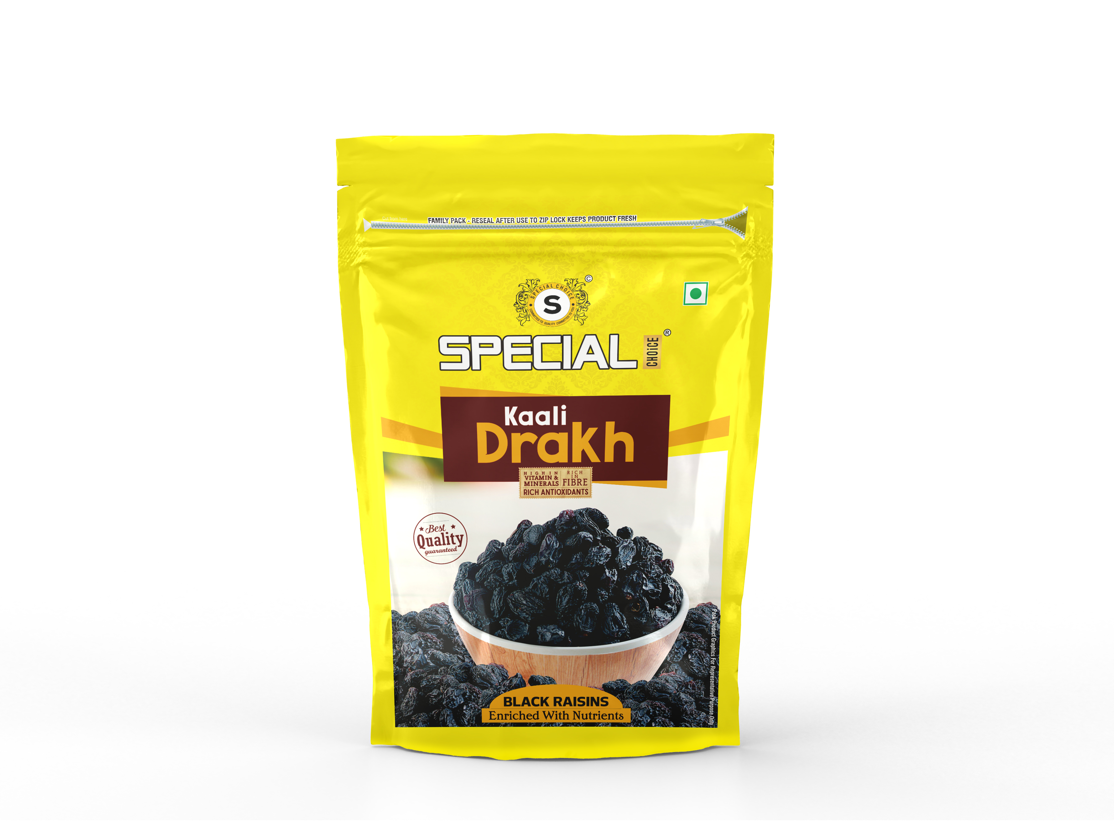 Special Choice Kali Darakh / Black Raisins (Seedless) Special Choice Dry Fruits are an extremely fundamental piece of our eating routine as it contains an enormous number of supplements. Special Choice is providing you the Premium Dryfruits with Great Offers and Discounts.