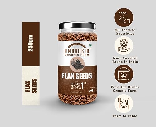 Ambrosia Organic Farm Flax Seed 250g - Nature's Powerhouse For Weight Loss And Lustrous Hair: Packed With Omega-3s Fiber And Protein For Healthy Weight Management And Hair Growth.