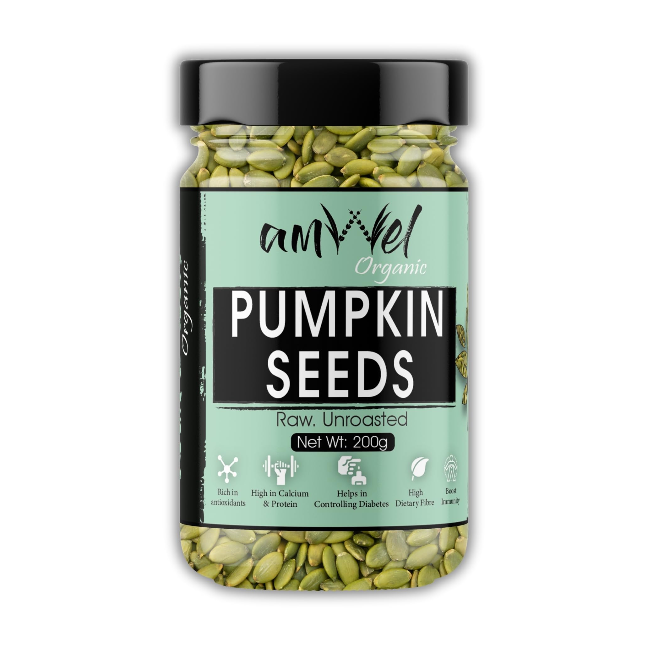 Amwel Organic Pumpkin Seeds 200g | Raw Unroasted edible seed for weight management and hair regrowth | Diet Food eating Snack