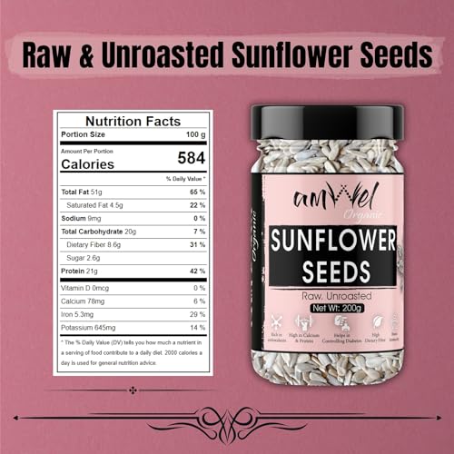 Amwel Organic Sunflower Seeds 200gm | Raw Unroasted edible seed for weight loss | Gluten Free Omega 3 High fibre Keto diet snack for eating | USDA Certified grains