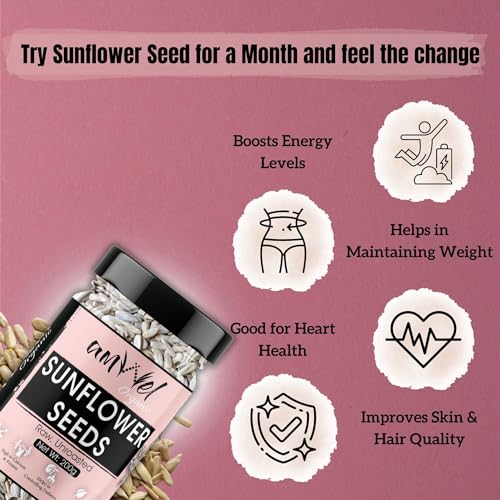 Amwel organics best quality Sunflower seeds contain vitamin B6 which improves mood concentration and memory by releasing serotonin and norepinephrine.