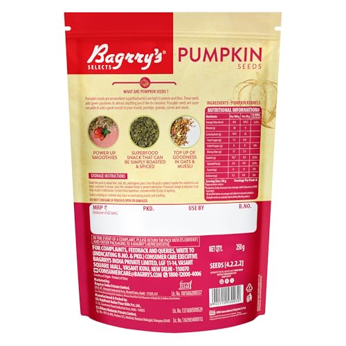 STRONG BONES: The citronella present in Bagrry's Watermelon seeds can help in strengthening the muscle tissue and keeping your bones strong. Also these watermelon seeds (majaj seeds) are 100% vegan. BOOSTS IMMUNITY: Being a rich source of antioxidants Bagrry's Watermelon seeds can keep you away from any stomach infection and boost your immunity. GLOWING SKIN: Since it is a rich source of iron and magnesium these raw seeds helps in maintaining healthy skin. Omega-3 present in these raw seeds might make your skin glow. VITAMINS LOADED: Niacin and vitamin B6 present in Bagrry's Watermelon seeds might be responsible for the proper functioning of the nervous system. Bagrry's Watermelon seeds may help improve the blood circulation FIBRE RICH: These Gluten free Watermelon seeds are a rich source of fiber and vitamins which regulates the bowel movements strengthens the immune system and avoids the risk of any stomach infection. HIGH PROETIN: Bagrry's Raw Watermelon Seeds are high in protein. These natural seeds can also be eaten as a healthy snack. BAGRRY'S RANGE OF SEEDS: Bagrry's provide wide variety of seeds â Flax Seeds Sunflower Seeds Pumpkin Seeds