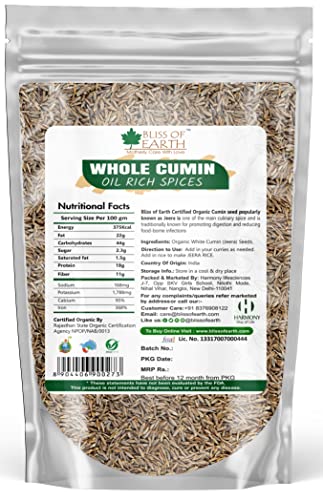 Bliss of Earth Certified Organic Cumin seed popularly known as Jeera is one of the main culinary spice and is traditionally known for promoting digestion and reducing food - borne infections.