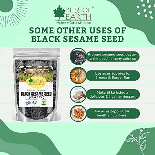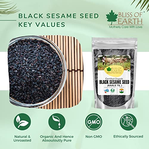 Bliss of Earth 1kg unhulled Black Sesame Seeds, Kaale Til, Fresh & Organic Fully Fiber Rich Great for Cooking & Baking