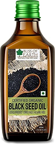 Bliss of Earth Organic Groundnut Oil is extracted by cold pressing of groundnuts without using hexane. It is rich in nutrients vitamins and poly-unsaturated fats. It is also effective in decreasing cholesterol and good for hormonal activities. Like other plant-based oils groundnut oil contains no cholesterol. Groundnut oil is sometimes applied directly to the skin for joint pain dry skin and other skin conditions Bliss of Earth organic Kalonji Oil (Black Cumin Seed Oil) is a premium quality 100% pure 100% organic unrefined virgin & cold pressed oil. It is extracted from the seeds of organic black cumin. It is a rich source of essential fatty acids and also contains two very powerful compounds Nigellone an anti-histamine and Thymoquinone an anti-inflammatory along with other nutrients that work synergistically to support the body's various functions.