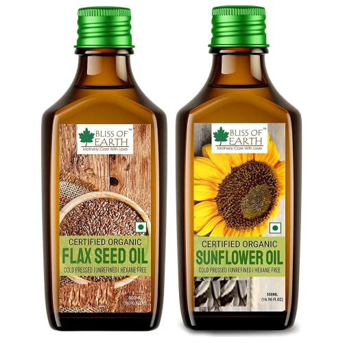 Bliss of earth 500ML Organic Flaxseed Oil +500ML Organic Sunflower Oil For Cooking, Cold Pressed & Hexane Free Oil (pet bottle)