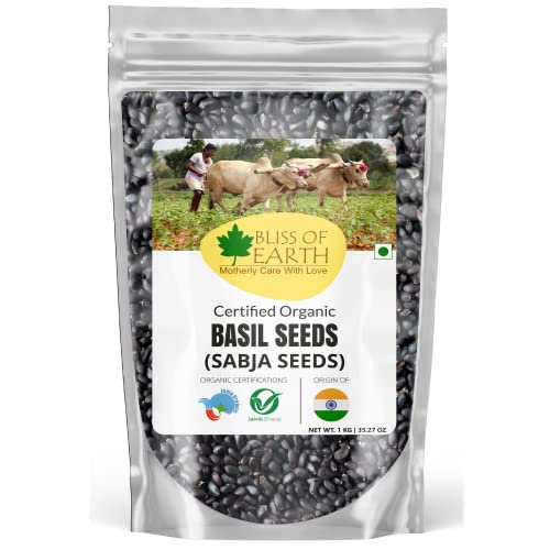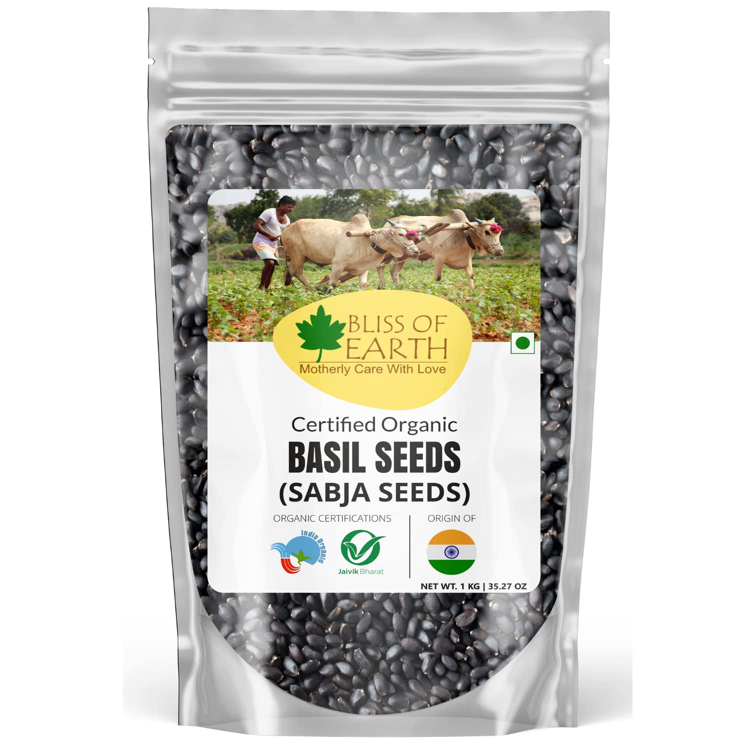 Bliss of Earth Certifed Organic Basil Seeds (Sabja) are used to add a unique flavour in food and beverages. basil seeds is a natural source of protien high in fiber a good source of minerals rich in plant base omega-3 fat & carbs. Preferably it can be eaten after soaking them in water for few minutes with many dishes.