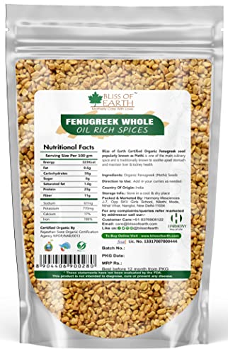 Bliss of Earth Certified Organic 200gm Fenugreek seed (Sabut Methi Dana) spices and masala For | hair grow | Boosting metabolism & Immunity | Weight Loss | Healthy cooking