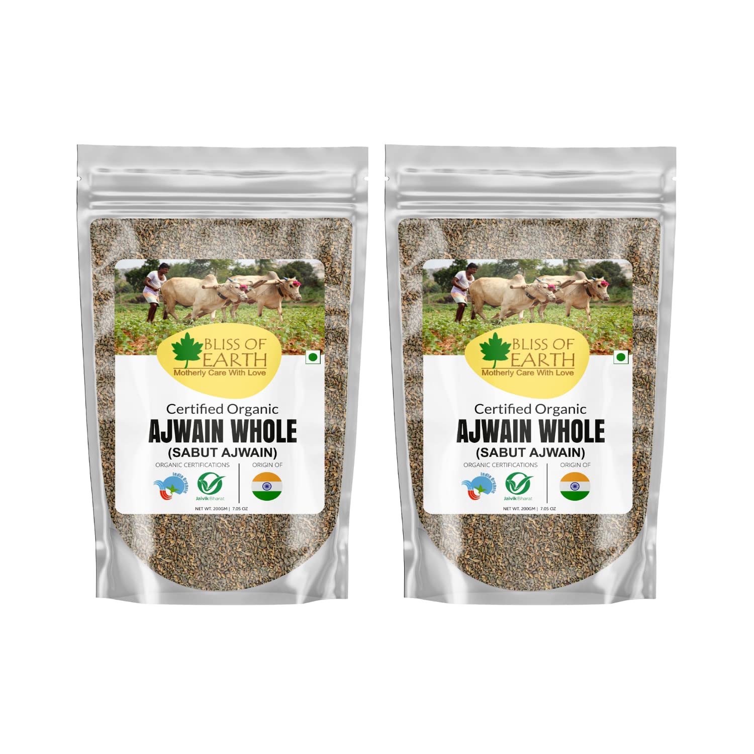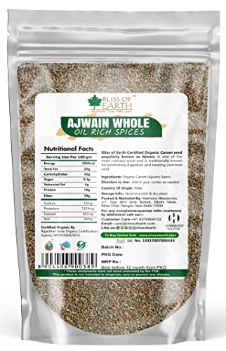 Bliss of Earth Certified Organic Ajwain/Carom Seeds Indian Spices & Masala For Better Hair, Skin, Health & Cooking (2x200g)