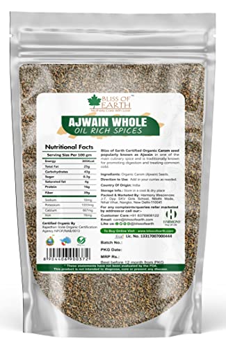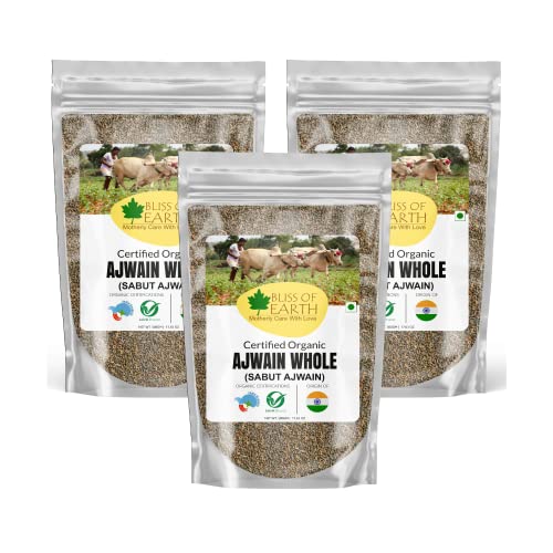 Bliss of Earth Certified Organic Ajwain/Carom Seeds Indian Spices & Masala For Better Hair, Skin,Health & Cooking (3x500gm)