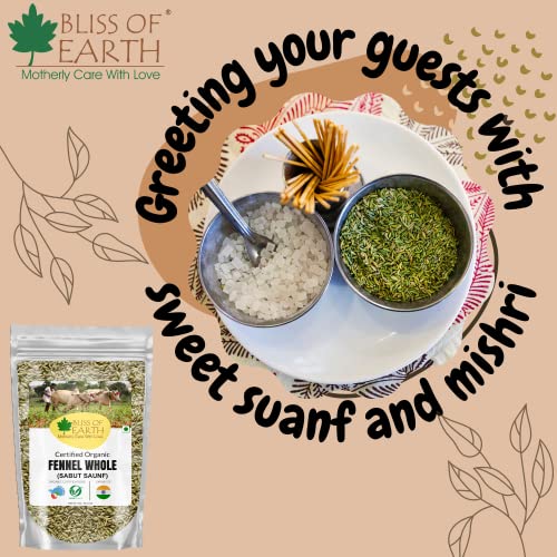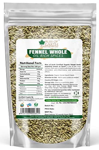 HomeGroceryNutsSeedsBliss of Earth Certified Organic Fennel seed (Saunf) Indian Spice Fresh & Sweet Great for Weight loss | digestive health or Cooking (500gm)