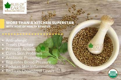 Bliss of Earth Natural White Onion Powder is dehydrated ground onion that is most important culinary ingredients in every kitchen. Its characteristics strong flavour when raw makes it great addition on salad. Its sweet flavour when cooked is a key element for meats poultry seafood and all kind of side dishes. The nutritional value of coriander seeds is without doubt mind-blowing. It contains 11 different types of essential mineral oils and vitamins Dhania seeds are also used as a spice in indian chinese pakistani european and middle-east culinary preparations. In north india dhania powder is widely used for spicing pickles chutneys stews marinades sausages and curries.
