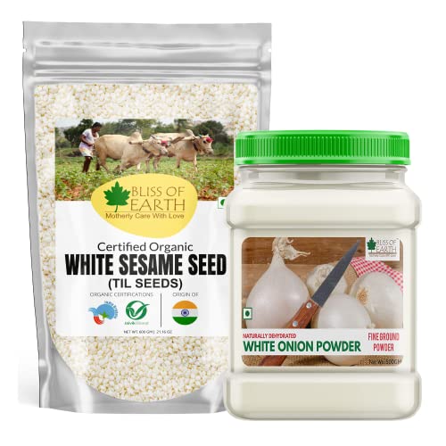 Bliss Of Earth Combo Of Natural White Onion Powder (500Gm) For Cooking & Hair Growth And Organic White Sesame Seeds (600Gm) For Eating (Pack Of 2)