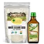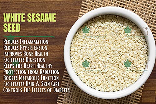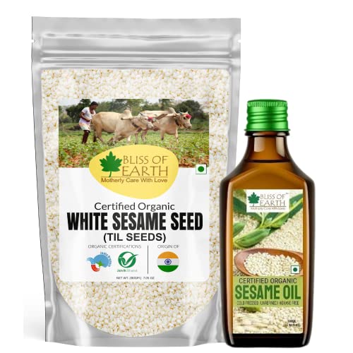 Bliss of Earth Organic White Sesame seeds are dehulled and are excellent source of copper calcium omega fatty acids iron magnesium phosphorus zinc and selenium. Sesame Seeds are also a good source of fiber with a rich nutty flavour. Called the "queen of oil seeds" these tiny seeds are a go-to topping on breadsticks and burger buns. Ingredients: Organic Sesame Seeds Bliss of Earth Organic Sesame Oil is extracted by cold pressing of white sesame seeds without using hexane. Sesame seeds are rich sources of protein vitamins and antioxidants. It has an ability to generate heat and energy in the body and its numerous beauty and hair benefits sesame seeds are loaded with nutrition that makes it a must-have in your winter diet.