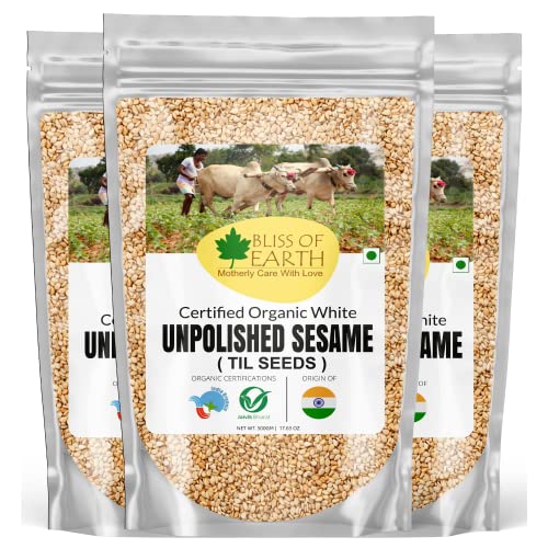 Bliss of Earth Organic Unpolished Sesame Seeds White For Eating, Raw Til Seeds Pack Of 3x500gm