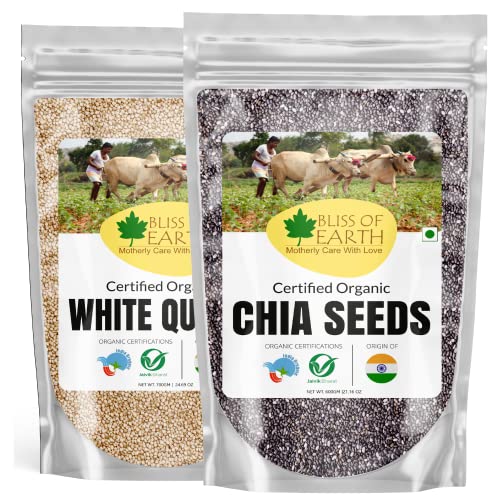 Bliss of Earth Certified Organic Chia Seeds are one of the healthiest food. They are loaded with nutrients that can benefit your body and brain. The high fiber and protein content in chia seeds can also helps in weight loss Bliss of Earth Certified Organic White Quinoa is one of the most popular healthfood. Its jigh in protein fiber magnesium B vitamins iron potassium calcium phosphorus vitamin E and various beneficial antioxidants. Its also one of the few plant foods that contain sufficient amount of all nine essential amino acids.