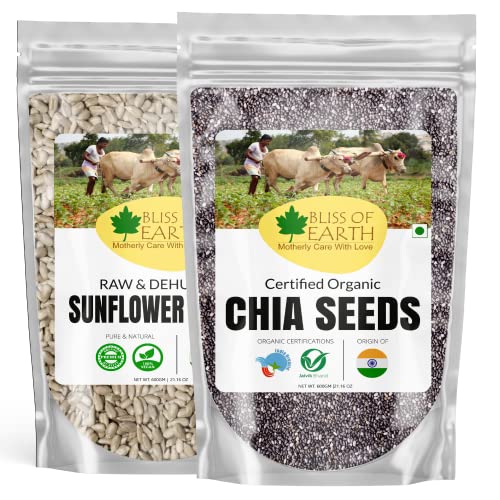Bliss of Earth Certified Organic Chia Seeds are one of the healthiest food. They are loaded with nutrients that can benefit your body and brain. The high fiber and protein content in chia seeds can also helps in weight loss. Bliss of Earth Naturally Organic Sunflower Seeds are dehulled and are one of the healthiest superfood. They are loaded with nutrients that can provide a substantial amount of healthy fats beneficial plant compounds and several vitamns and minerals. Incorporating these seeds in your diet improves heart health & prostate health.