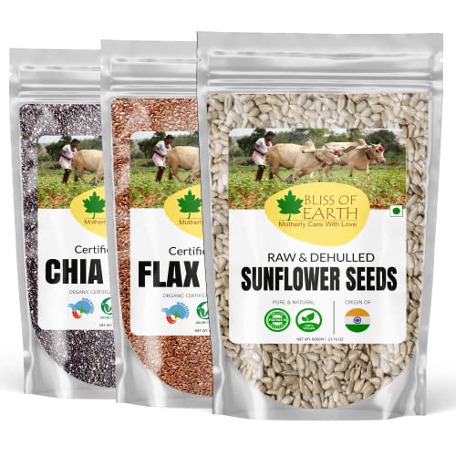 Bliss of Earth Certified Organic Chia Seeds are one of the healthiest food. They are loaded with nutrients that can benefit your body and brain. The high fiber and protein content in chia seeds can also helps in weight loss. Bliss of Earth Certified Organic Flax Seeds popularly known as Alsi is one of the popular health food due to its high content of hearth healthy OMEGA-3 fats fiber and other plant compounds. It offers many health benefits such as improved digestion and reduced risk of heart disease. Bliss of Earth Naturally Organic Sunflower Seeds are dehulled and are one of the healthiest superfood. They are loaded with nutrients that can provide a substantial amount of healthy fats beneficial plant compounds and several vitamns and minerals. Incorporating these seeds in your diet improves heart health & prostate health.