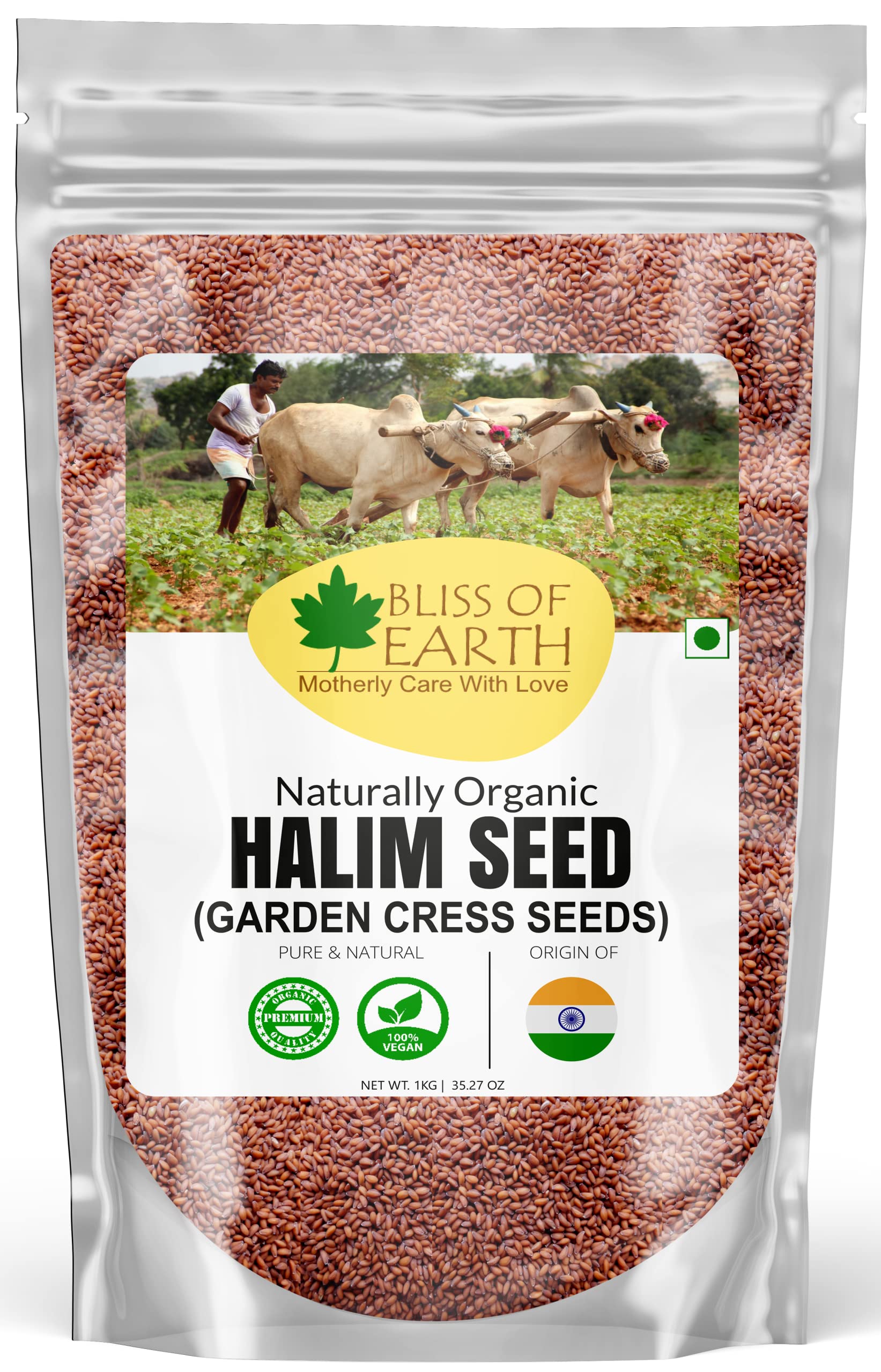 Bliss of Earth Naturally Organic Halim seeds also known as Haleem or Aliv are garden cress seeds loaded with many health benefits and nutritional qualities. These seeds were considered as an important nutritional and medicinal plant in India since the Vedic era (between 500? 1700) B.C. Halim Seeds are good source of protein fiber phenolic acids and so many nutritional compounds and considered as a functional foods that promote overall health and well-being while keeping diseases at bay apart from providing nutrition.