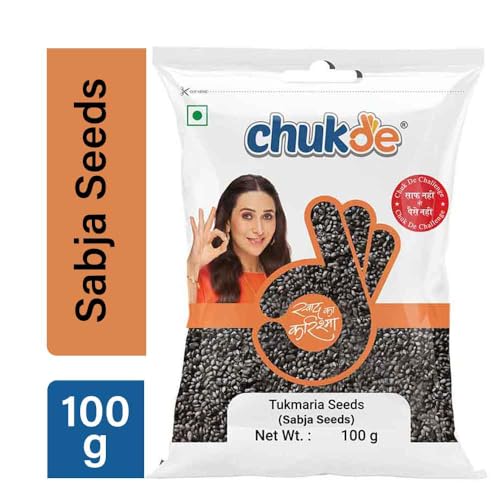 Chukde - Raw Chia Seeds (Sabja Seeds) - Tukmaria Basil & Tulsi Seeds - Ideal for Detox Weight Loss and Health Benefits - Multipurpose Uses for Drinks Puddings & Salads - 100 Gram (Pack of 2)