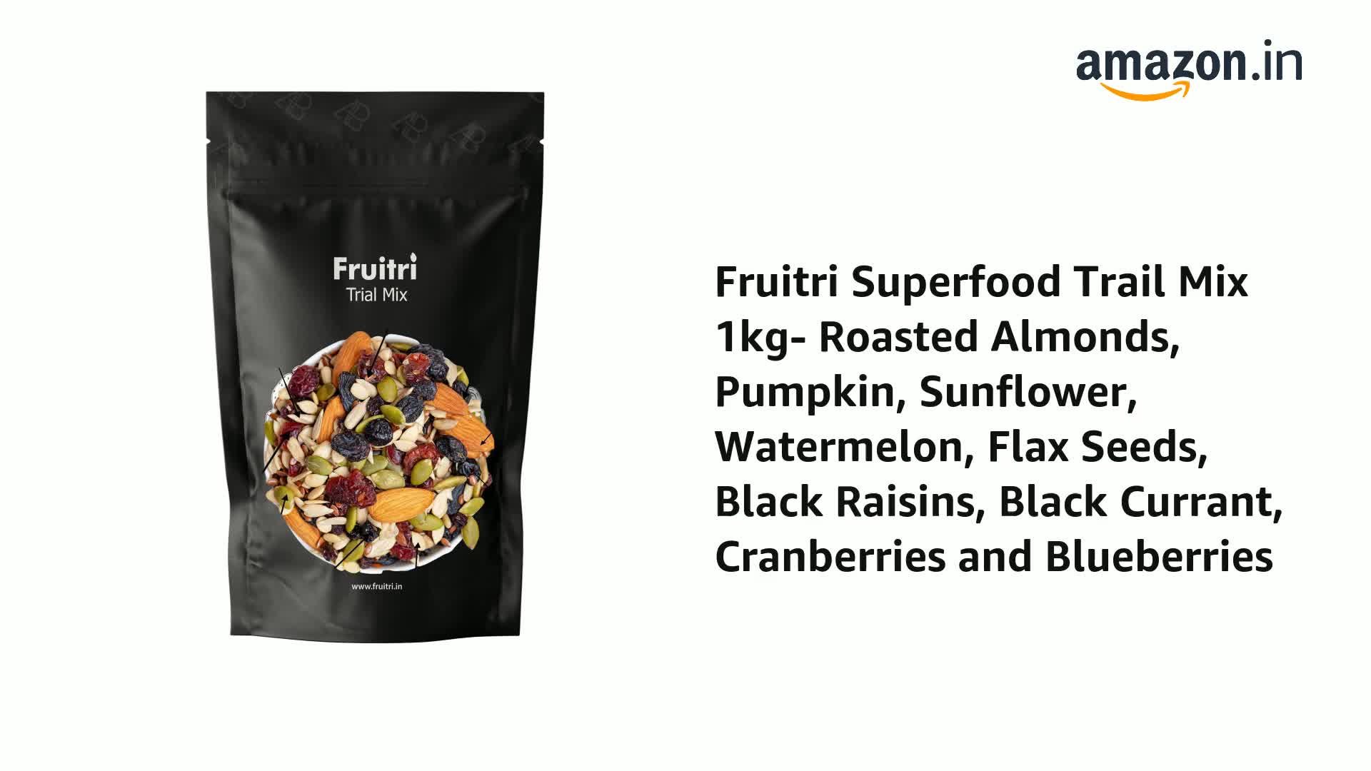 Fruitri Superfood Trail Mix 1kg- Roasted Almonds Pumpkin Sunflower Watermelon Flax Seeds Black Raisins Black Currant Cranberries and Blueberries