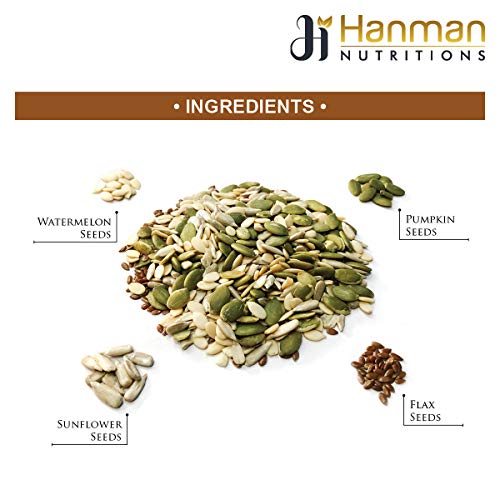 A Pack of Mixed seeds presented by Hanman Nutritions which has four- in- one raw seeds includes Watermelon seeds Sunflower seeds Pumpkin seeds and Flax seeds. These seeds are extremely nutritious and also great sources of Fiber contains many essential vitamins Minerals and Antioxidants.