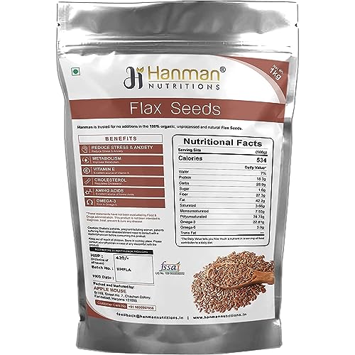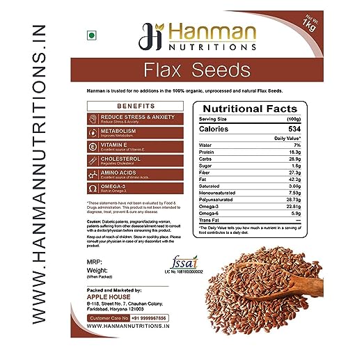 Hanman Nutritions 100% Natural Flax Seeds are a source of plant-based protein and can be a great alternative to vegan protein. Our flax seeds are farmed and harvested with the ensure purity & consistent quality. Apart from being a rich source of some vital vitamins and minerals. Since they are high in fibre content they help control appetite and give a full stomach feeling for a longer time. Flaxseeds enhance the nutritional value when added to your fluid and solid food intake Be it sprinkling on green salads smoothies adding to hot or cold cereals or your baked goods; Flaxseeds make a crunchy nutritious and tasty addition to your daily diet. Flax seeds 1 kg