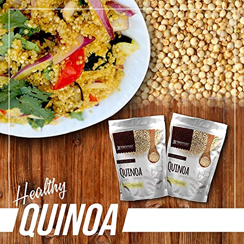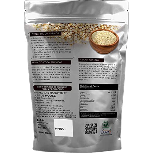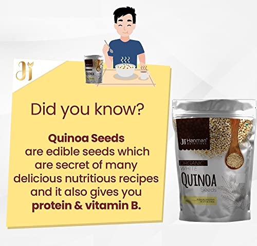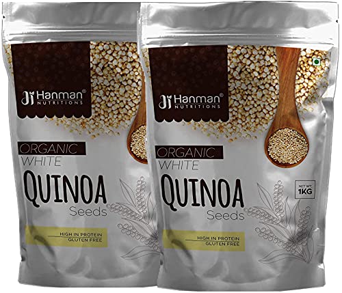 Hanman Nutritions Quinoa is a Highly nutritious food by nutritionists and doctors Cooked Quinoa (Kinwa) is a favourite because of its great taste nutritional value and ease of preparation. Quinoa can be used in place of rice in all your favorite meals. the raw quinoa is passed through a rigorous cleaning rinsing and spin-drying process to give you nothing but the best. From salads to burgers patties tawa pulao and even the everyday khichdi this high protein food is fast becoming a regular feature in vegetarian gluten free diets. Rich in a variety of nutrients our quinoa is sure to leave you feeling healthy and light with every bite. Most food products today contain artificial chemicals flavours colours & enhancers. But not Hanman Nutritions. Everything about Hanman Nutritions is 100% Natural. We strive to inspire a healthy lifestyle through gluten free organic & nutritious superfoods (pack of 2x1kg).