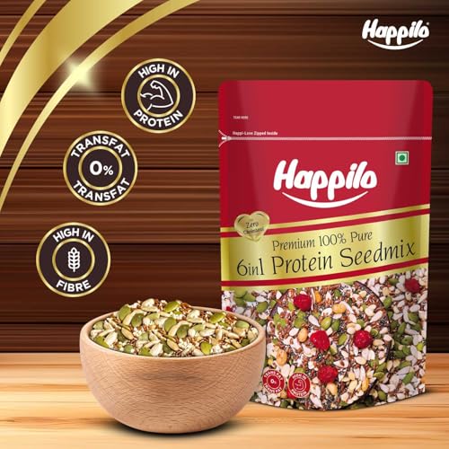 Happilo Premium 6 in 1 Super Seeds & Nuts Mix pack are often thrown away while consuming the fruit thereby not actually utilizing the advantages of the health benefits each and every seed provides. Happilo brings to you a premium combo of 5 Roasted seeds mix all of which possess their own specific health benefit. Being antioxidant-rich these seeds tend to protect your health from the unwanted foreign particles entering your body. Roasted Sunflower Pumpkin Flax with Watermelon seeds & Chia Seeds are a combination of healthy seeds for weight management. Quality assured - Happilo products are rigorously tested against the industry's best quality standards.