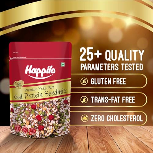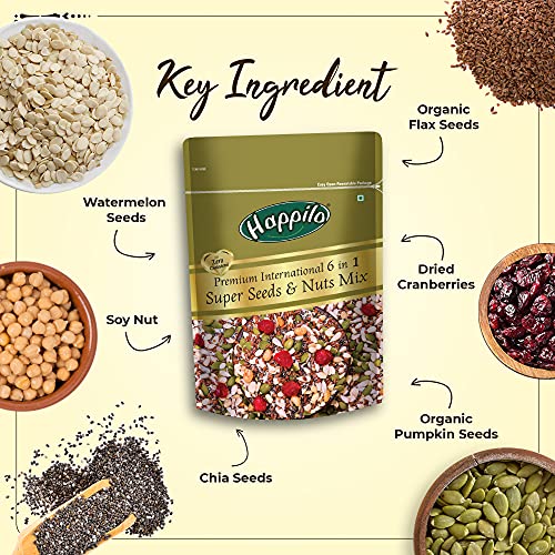 Happilo Premium 6 in 1 Super Seeds & Nuts Mix pack are often thrown away while consuming the fruit thereby not actually utilizing the advantages of the health benefits each and every seed provides. Happilo brings to you a premium combo of 5 Roasted seeds mix all of which possess their own specific health benefit. Being antioxidant-rich these seeds tend to protect your health from the unwanted foreign particles entering your body. Roasted Sunflower Pumpkin Flax with Watermelon seeds & Chia Seeds are a combination of healthy seeds for weight management. Quality assured - Happilo products are rigorously tested against the industry's best quality standards.