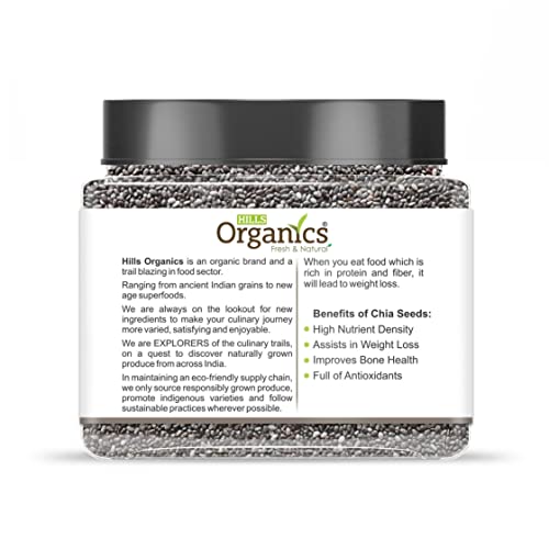 HILLS ORGANICS Raw Unroasted Chia Seeds 100G | 100% Fresh Natural Dietary Food | Boosts Immunity | Nutritious & Delicious Seeds for Healthy Snacking | Ideal for Weight Loss | Hygienically Packed