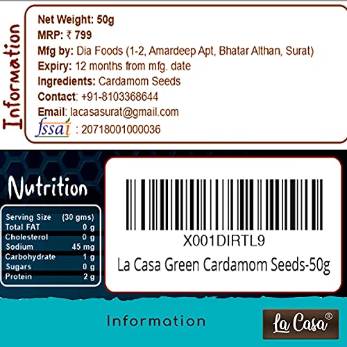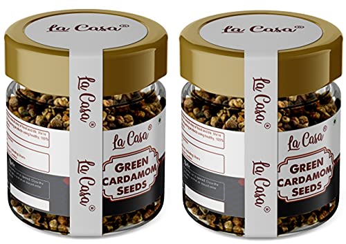 You'll LOVE our Premium Cardamom Seeds--Here's Why: - 100% Natural Organic No preservatives or "fillers" & Great Flavor! - Packed in a no barrier Glass Container let us tell you how important that is when using high quality Cardamom Seeds! - La Casa is a Indian Brand selling food products for over 15 years buy with confidence! - Enjoy Premium Cardamom Seeds with your loved ones.