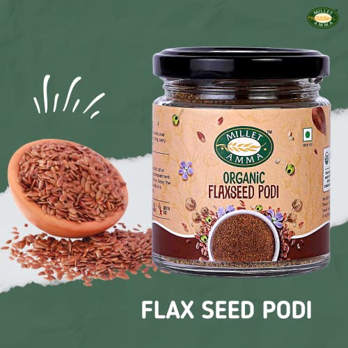 Flax seeds are a nature's gift that possesses potential health-improving components. Flaxseed contains a good amount of α-Linolenic acid an omega-3 fatty acid protein dietary fiber lignan and Secoisolariciresinol diglucoside (SDG). Flax seeds from Millet Amma can be utilized in house or ricotta cheddar and natural product yogurt. They likewise add to the flavor of smoothies and shakes. Blend them into hotcake or biscuit hitter and add more nutritive worth and taste to candy parlors. The fragile nutty flavor adds amusing to exhausting porridges and natural product dishes. Eat these for a solid body and shield yourself from diabetes. These seeds are 100% natural guaranteed. Flaxseeds upgrade the dietary benefit when added to your liquid and strong food admission. Loaded with the perfect proportion of crunch Millet Amma Premium Flaxseeds involve a marginally nutty flavor and a crunchy surface to it. These exceptional quality flaxseeds make a healthy expansion to your sweet and exquisite rarities. Flaxseeds comprise a solid and scrumptious dietary part and can be polished off by adding them to your drinking water. Be it sprinkling on green servings of mixed greens smoothies adding to hot or cold grains or your prepared products; Flaxseeds make a crunchy nutritious and scrumptious option to your everyday eating regimen. Flaxseeds are quality guaranteed and thoroughly tried against the business' quality norms. Accessible in a bunch of 200 gms these exceptional quality seeds are sold in a food-safe pocket and are cleanly pressed in a unit that fulfills worldwide sanitation guidelines. Flax Seed Podi is a super healthy and delicious chutney powder which you can easily make. This recipe is a good way to include omega rich flax seeds in your diet. Have this Flax Seed Podi with your rice with some ghee or dosa and paratha.