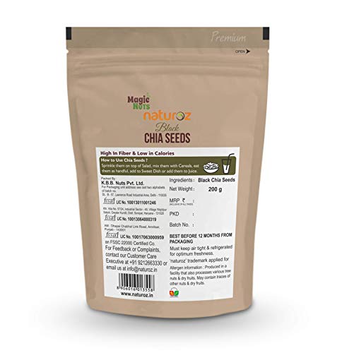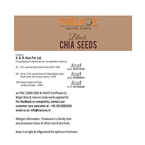 Naturoz Chia seeds are extreme good for health and they are easy to digest Chia seeds are high in antioxidants they have various benefits for health Chia means strength they also called energy booster They are loaded with fiber protein omega-3 fatty acids and various nutrients Also can mix other nuts and enjoy the taste Naturoz is a premium natural nuts and dry fruits brand Naturoz brings you the best and the most nutritious daily dose of healthy nuts and dryfruits At Naturoz we bring the nature’s goodness to you in the finest of packing All the products of Naturoz are 100% natural and free from any artificial ingredients and artificial coloring We serve you the finest of nuts and dry fruits from all over the world Our products are processed and packed in FSSC: 22000 & HACCP certified plant – The best among food safety ratings and certified by FSSAI
