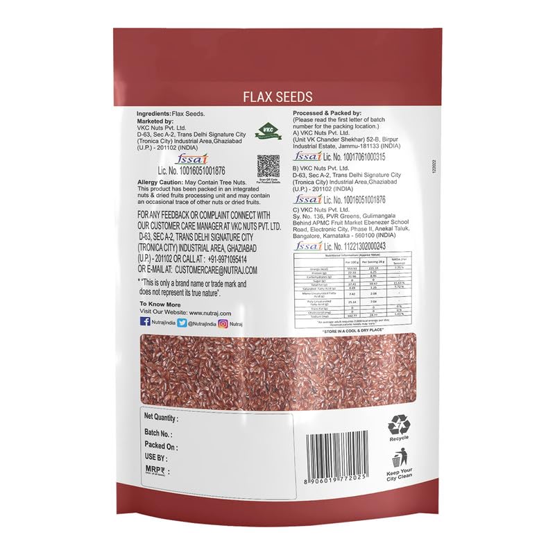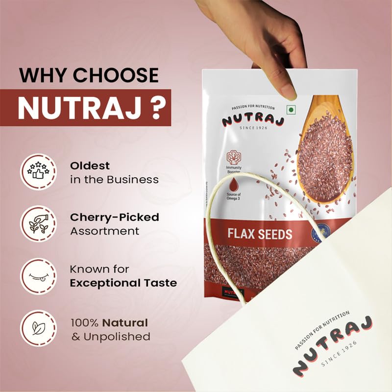 Elevate your health with Nutraj Flax Seeds a 100% vegan non-GMO superfood that's free from preservatives and additives. Perfect for enriching any diet these seeds are packed with essential nutrients that support overall well-being. Nutraj Flax Seeds are as versatile as they are nutritious! Sprinkle them on your smoothies for a nourishing boost mix them into your salads for added texture or incorporate them into trail mixes baked goods and more. With their mild nutty flavor and numerous health benefits these seeds are an effortless way to enjoy wholesome goodness every day.