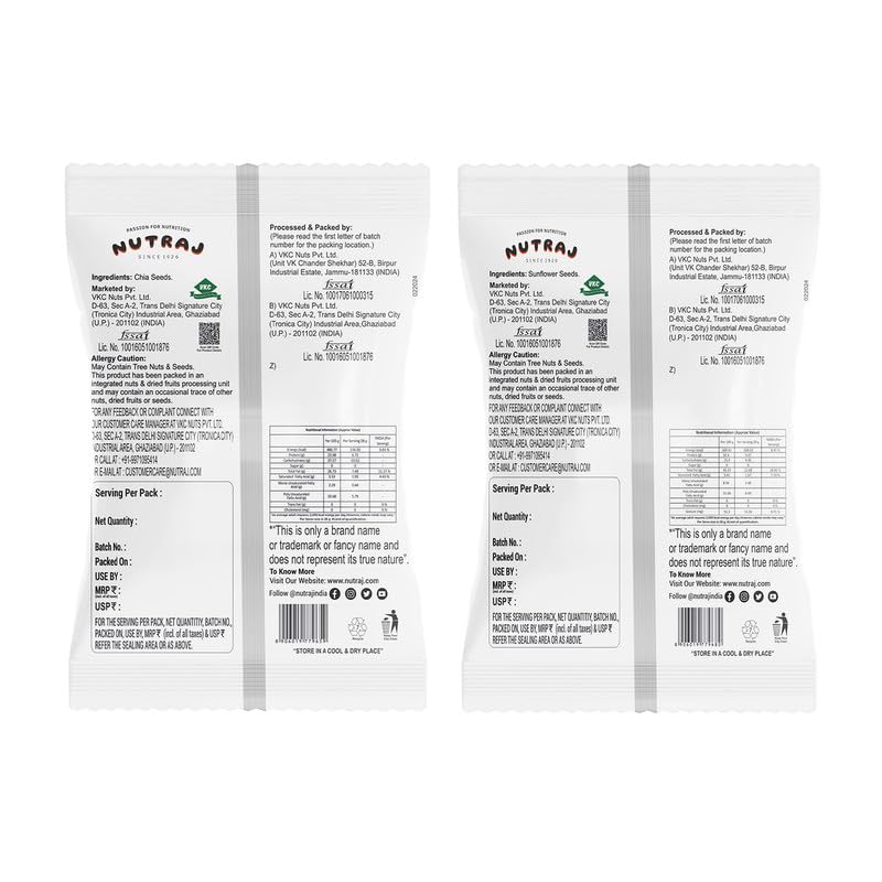 Nutraj Healthy Raw Seeds Combo is a healthy and nutritional combination of four different types of seeds: Combo of Sunflower & Chia Whole Seeds. Mix one tablespoon with water or juice for a tasty treat! This Nutraj Healthy Raw Seeds Combo 200g Seeds for Eating Super Seeds Combo is a very healthy and delicious snack for vegans and non-vegans alike. This combo is full of protein and fat making it an excellent addition to any vegan diet.