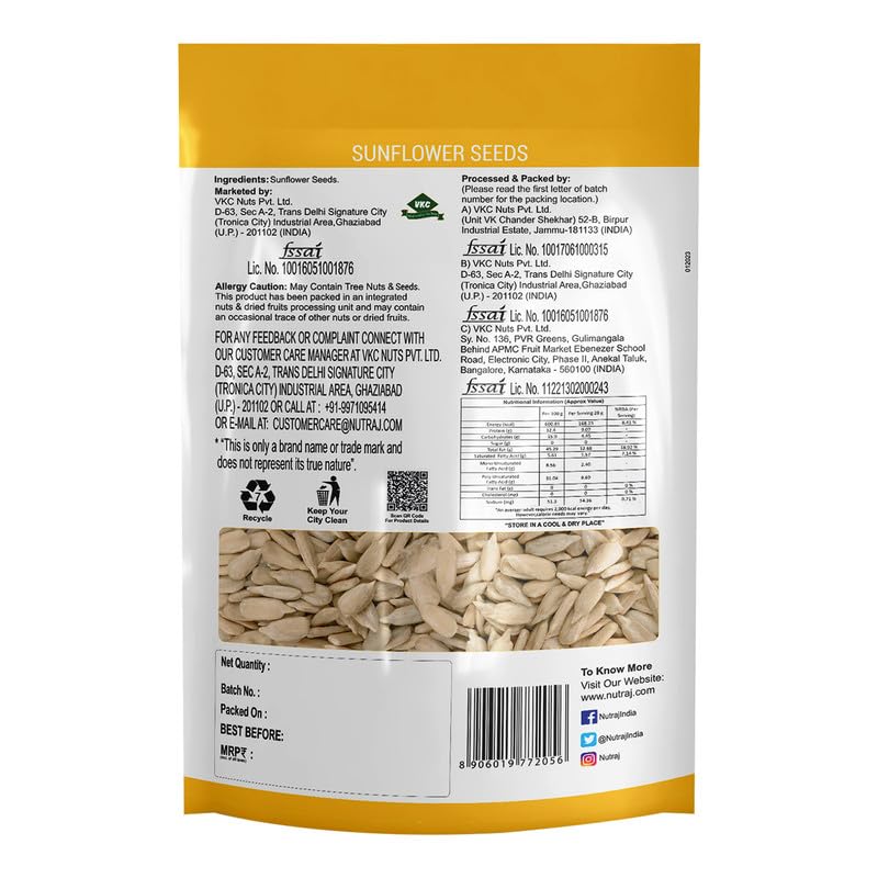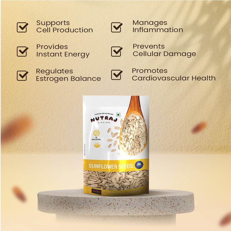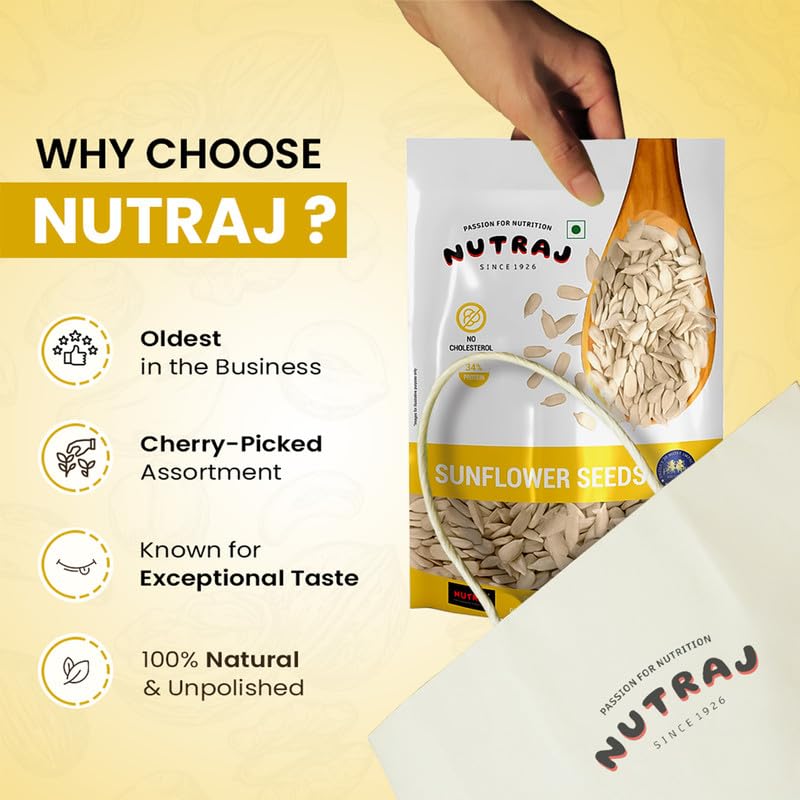 Nutraj Sunflower Seeds is the perfect snack for your diet for all the right reasons! Sourced from trusted farms they guarantee the freshest quality. These seeds are 100% vegan non-GMO and free from preservatives and additives making them suitable for various dietary needs. With a slightly nutty taste they are a healthy snack that will leave you craving more. They are versatile and can be used in various recipes such as cake and bread batters or sprinkled on salads oatmeal trail mixes and more!