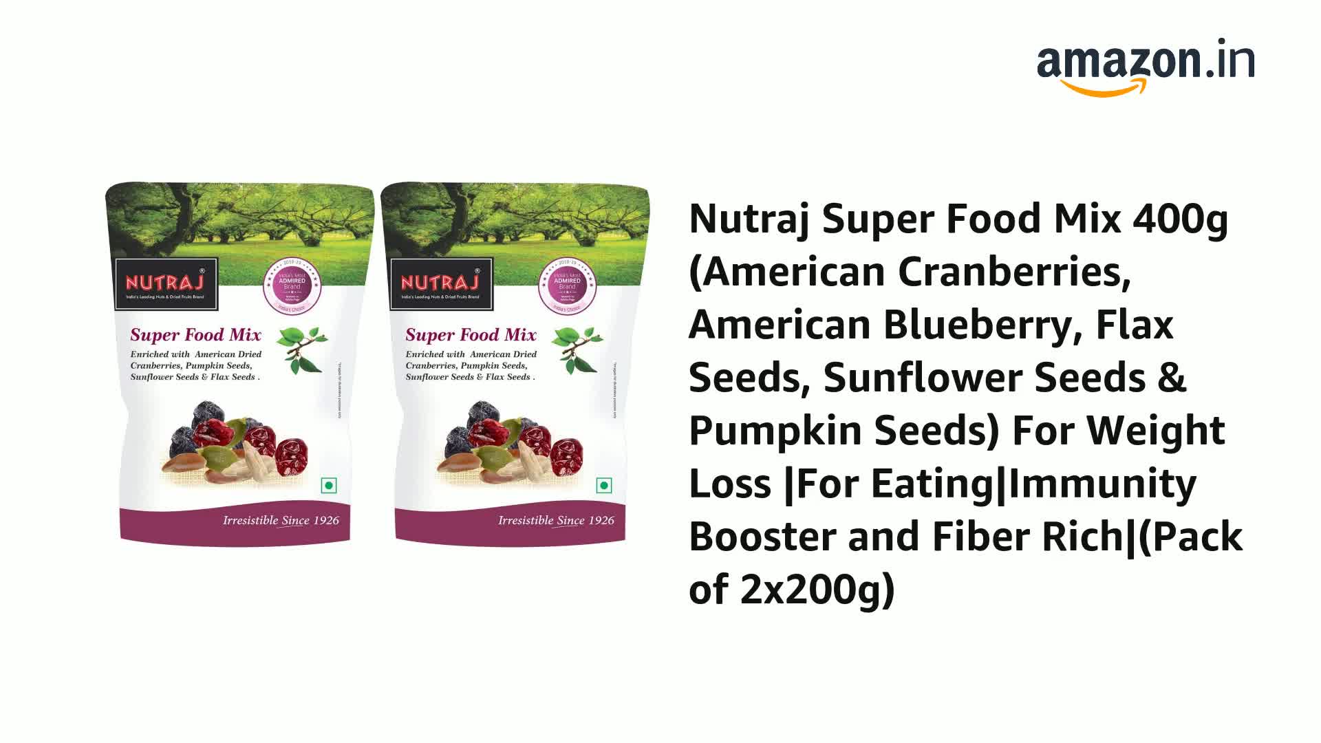 Nutraj Super Food Mix 400g (American Cranberries, American Blueberry, Flax Seeds, Sunflower Seeds & Pumpkin Seeds) For Weight Loss |For Eating|Immunity Booster and Fiber Rich| (Pack of 2x200g)