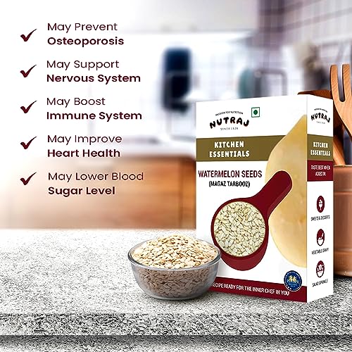 Add a crunchy twist of healthiness to your regular meals with Nutraj Kitchen Essentials Watermelon Seeds! From sweet to savory dishes these premium quality watermelon seeds can be included in your diet as a guilt-free snack beneficial to support general health. So why wait? Elevate the taste and nutritional factor of your recipes and take them to new heights with Nutraj Kitchen Essentials Watermelon Seeds.