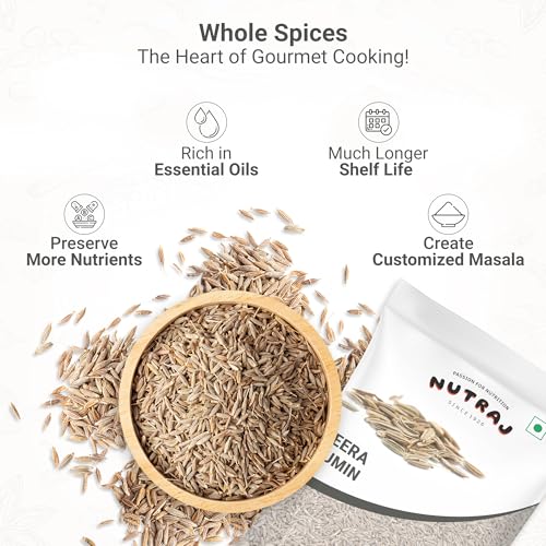 Nutraj Jeera is a must-have ingredient in your pantry! These cumin seeds are bursting with rich aromatic flavors that add a delicious spiciness to your dishes making them a great addition. And that's not all - these cumin seeds are packed with nutrition including dietary fiber antioxidants magnesium iron and vitamins E and K. You can use them in pulao beverages curries and spice blends. So why wait? Get yours today!