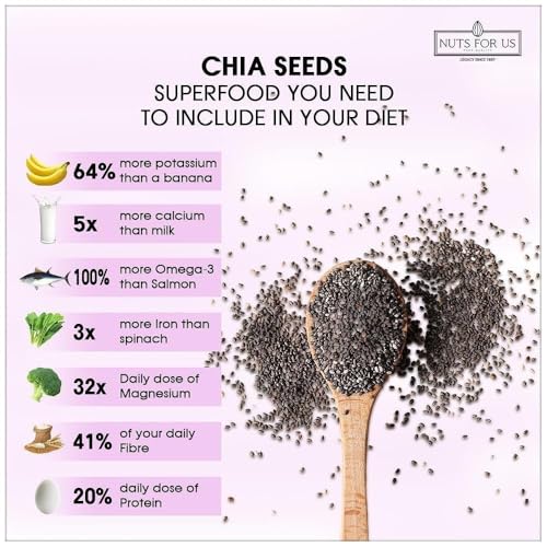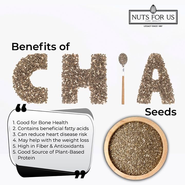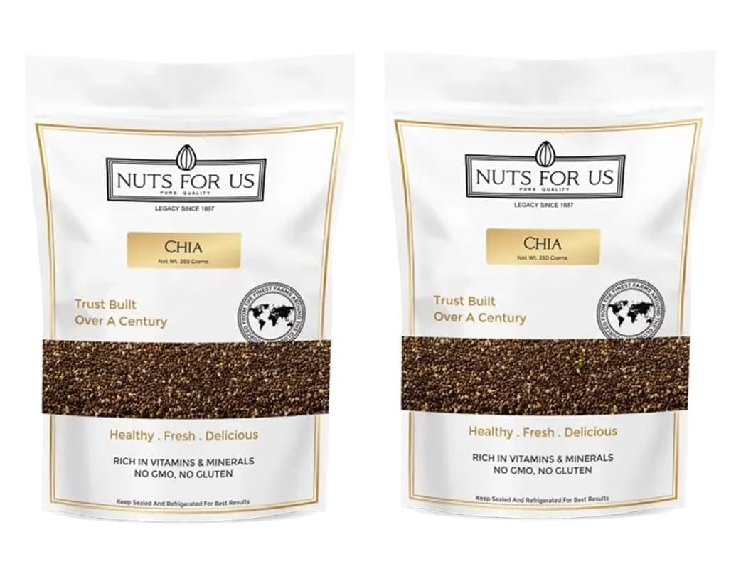 Nuts for Us Chia Seeds sourced from the finest chia plants Pack of 2 our 250-gram blend of white and golden chia seeds is designed to elevate your health and wellness. Each batch is meticulously selected and undergoes rigorous quality control to ensure you receive only the freshest most flavorful seeds. Packed with essential nutrients our chia seeds are a rich source of omega-3 fatty acids fiber protein vitamins and minerals. They support heart health enhance digestion and boost energy levels making them a perfect addition to your daily diet. The unique combination of white and golden chia seeds offers a delightful variety in texture and tasteenjoy the subtly nutty flavor of white chia or the mild sweetness of golden chia.