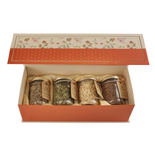 Elevate your snacking and health-conscious gifting with our Ultimate Healthy Seed Souvenirs BoxThis combo is carefully curated with Organic Watermelon seeds Organic Pumpkin seeds Organic Flax & Organic Sunflower Seeds which is a wholesome and thoughtful gift choice for health enthusiasts and anyone seeking a delicious yet guilt-free snacking experiencePacked with flavor crunch and nourishment this gift box is sure to delight the taste buds and promote a healthier lifestyle.