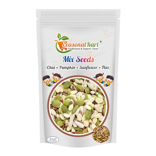 This flavorful mix of seeds is packed with nutrients. It contains a variety of tasty nuts including pumpkin seeds chia seeds sunflower seeds watermelonseed and flax seeds. A delicious and healthy snack that is high in protein fiber vitamins and minerals. Enjoy the blend of textures and flavors in this seed mix that is perfect for munching on anytime. With its mix of crunchy and creamy nuts and seeds it is sure to satisfy your hunger without breaking your calorie bank. The variety of seeds in this mix provides a well-balanced nutrient profile to support your overall health and well-being.