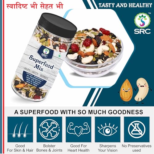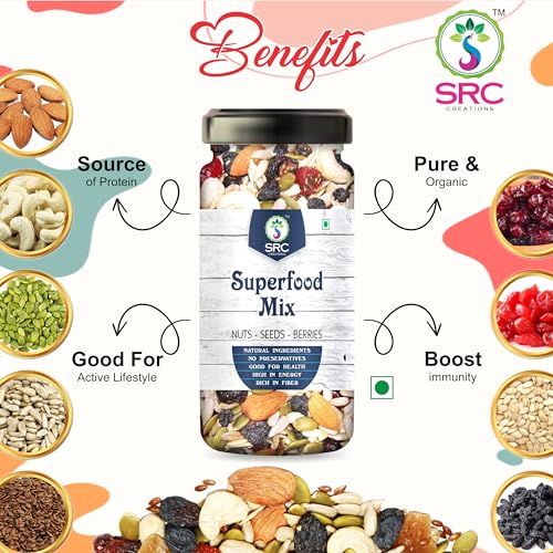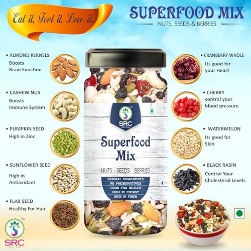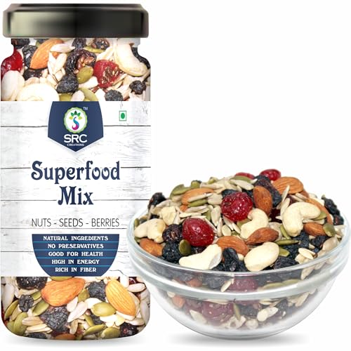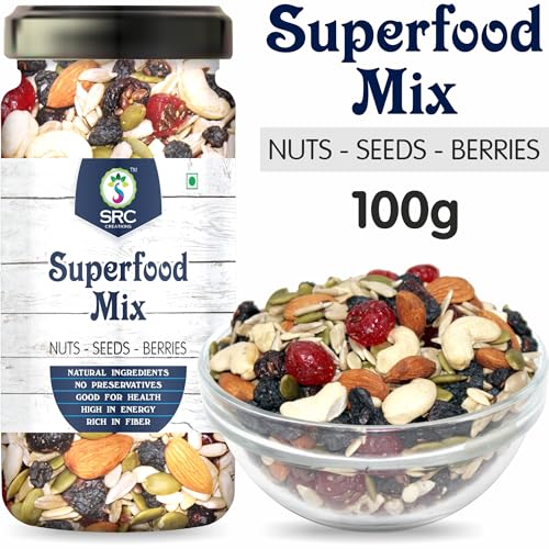 SRC CREATIONS 100 gm Jar Pack Ready to eat | Breakfast Food (Superfood Mix Nuts Seeds & Berries 100 gm)