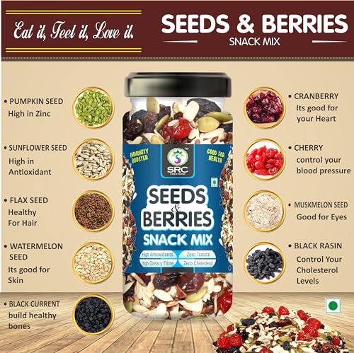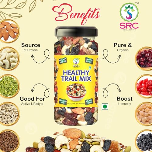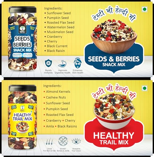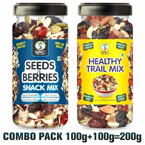 SRC CREATIONS Trail Mix Combo 200 gm Jar Pack | Ready to eat | Breakfast Food (Seeds & Berries Snack Mix 100g + Healthy Trail Mix 100g =200gm)